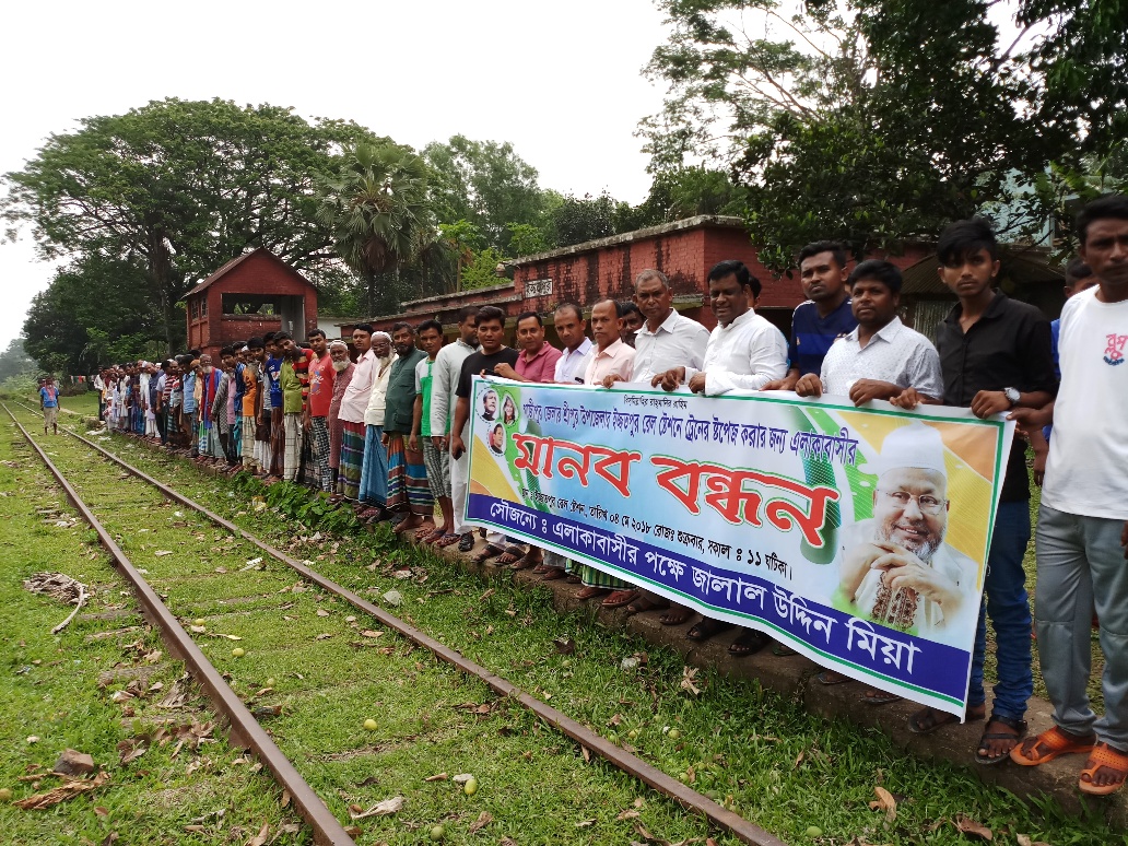 শ্রীপুরের ইজ্জতপুরে বন্ধ স্টেশন চালু ও ট্রেনের যাত্রাবিরতির দাবীতে মানবন্ধন